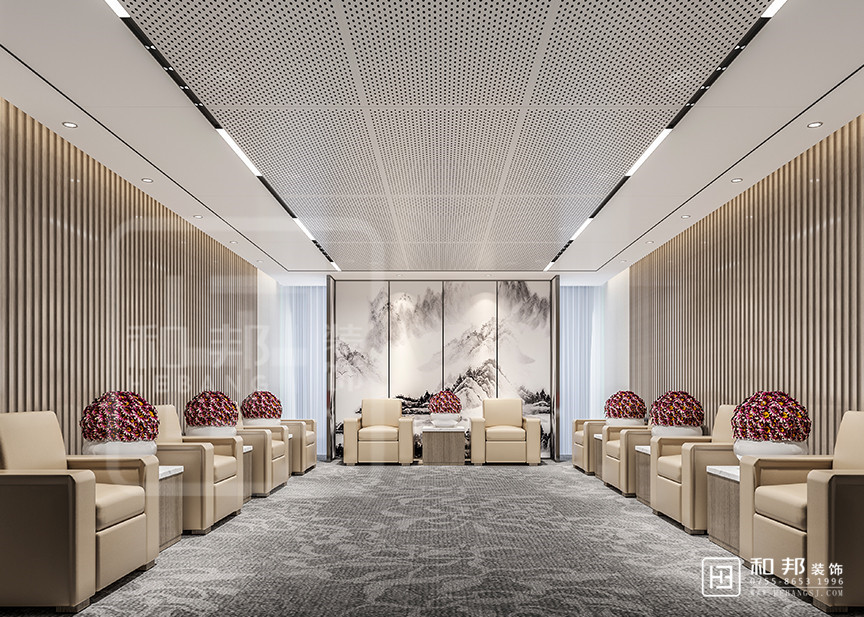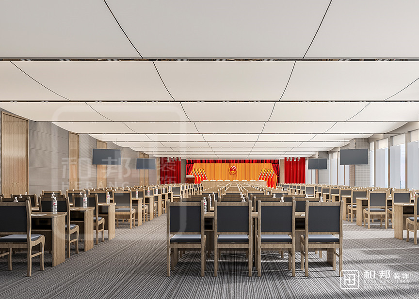 本設計在空間設計上用規(guī)整的方形,穩(wěn)重的色彩,給人以莊重嚴肅的視覺感受,整體大方簡潔, 嚴肅莊重。